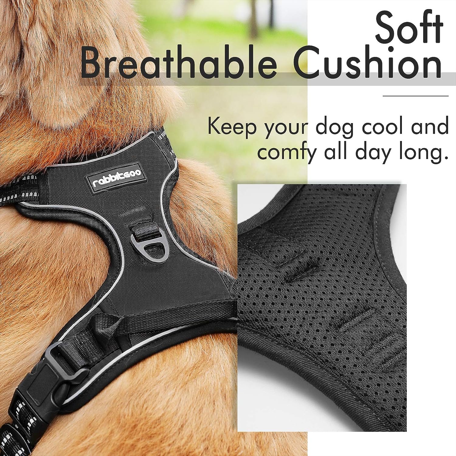 - Safe and Comfortable - Your dog will enjoy the daily walk in this comfort dog harness! Made of sturdy nylon oxford and padded with soft cushion to protect your dog's skin. Breathable air mesh keeps your dog cool during outdoor activities. Super bright reflective strips ensure a safe walk both day and night