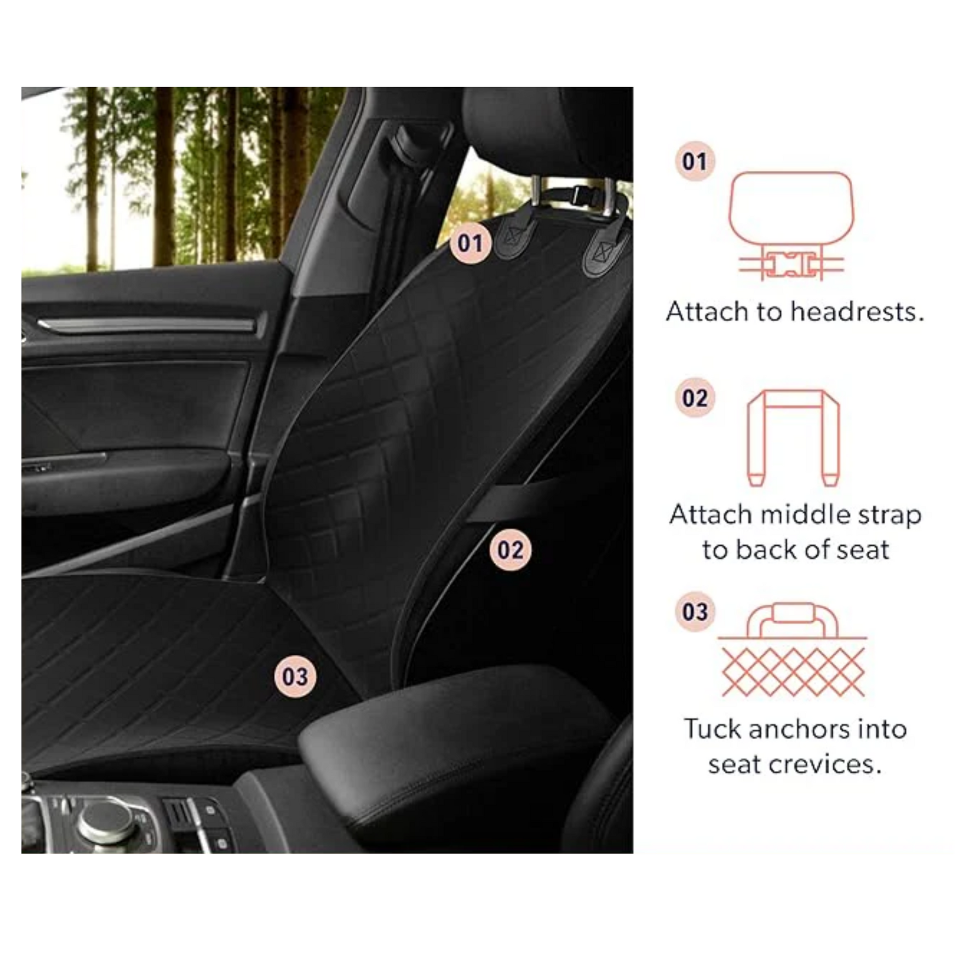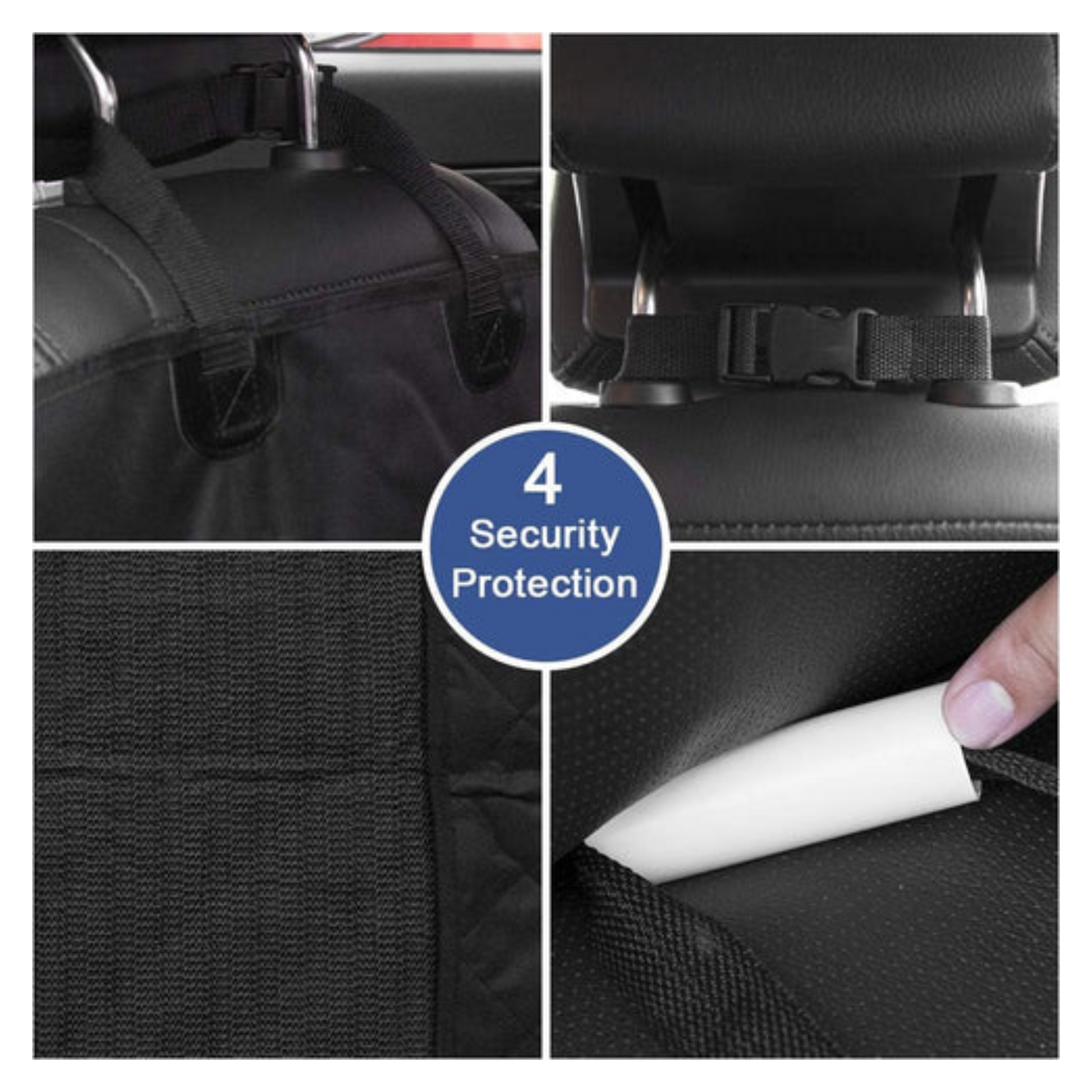 - SAFETY FIRST! - uses 4 levels of security protection to keep your pet safe! This amazing front car seat cover for dogs defines a whole new level of safety: one heavy-duty buckle for the headrest, and one for the backrest to make sure your dog front car seat cover is always secured in its place, and a seat anchor and non-slip bottom to ensure that your pet will never slide around!